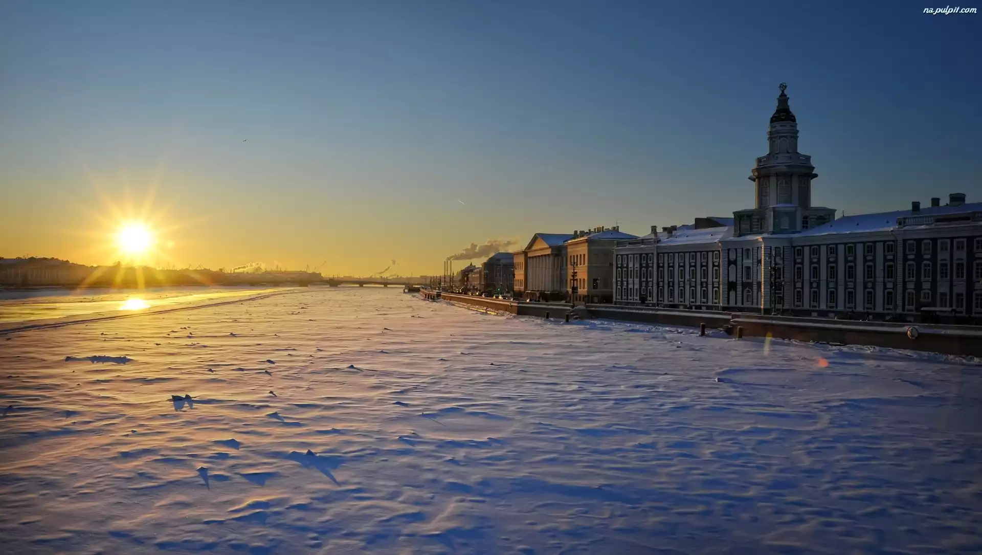 Słoneczko, Śnieg, Zima, Miasto Na Pulpit