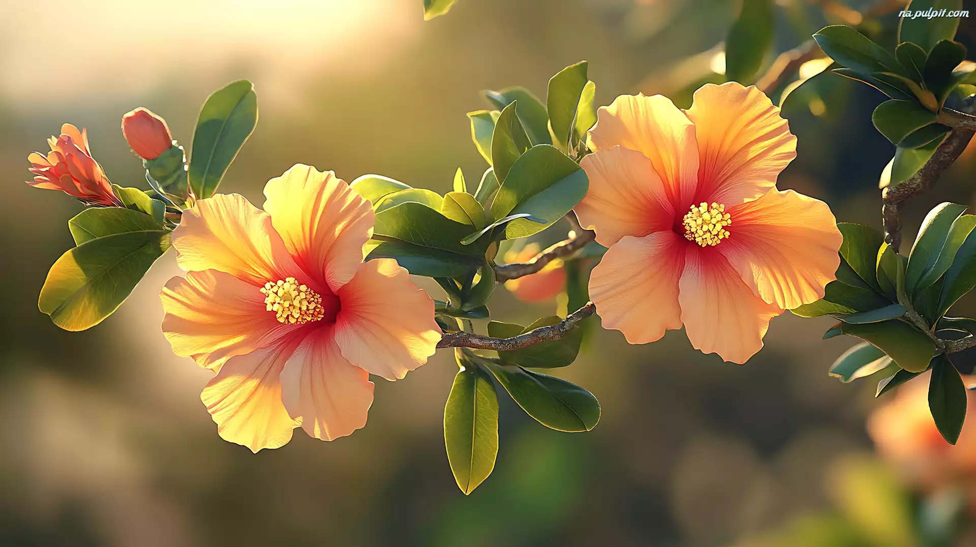 Światło, Hibiskus, Gałązka, Słoneczne, Kwiaty, Grafika Na Pulpit