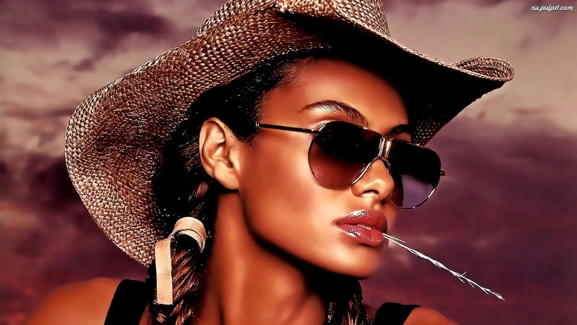 Słoneczne, Kapelusz, Kobieta, Okulary