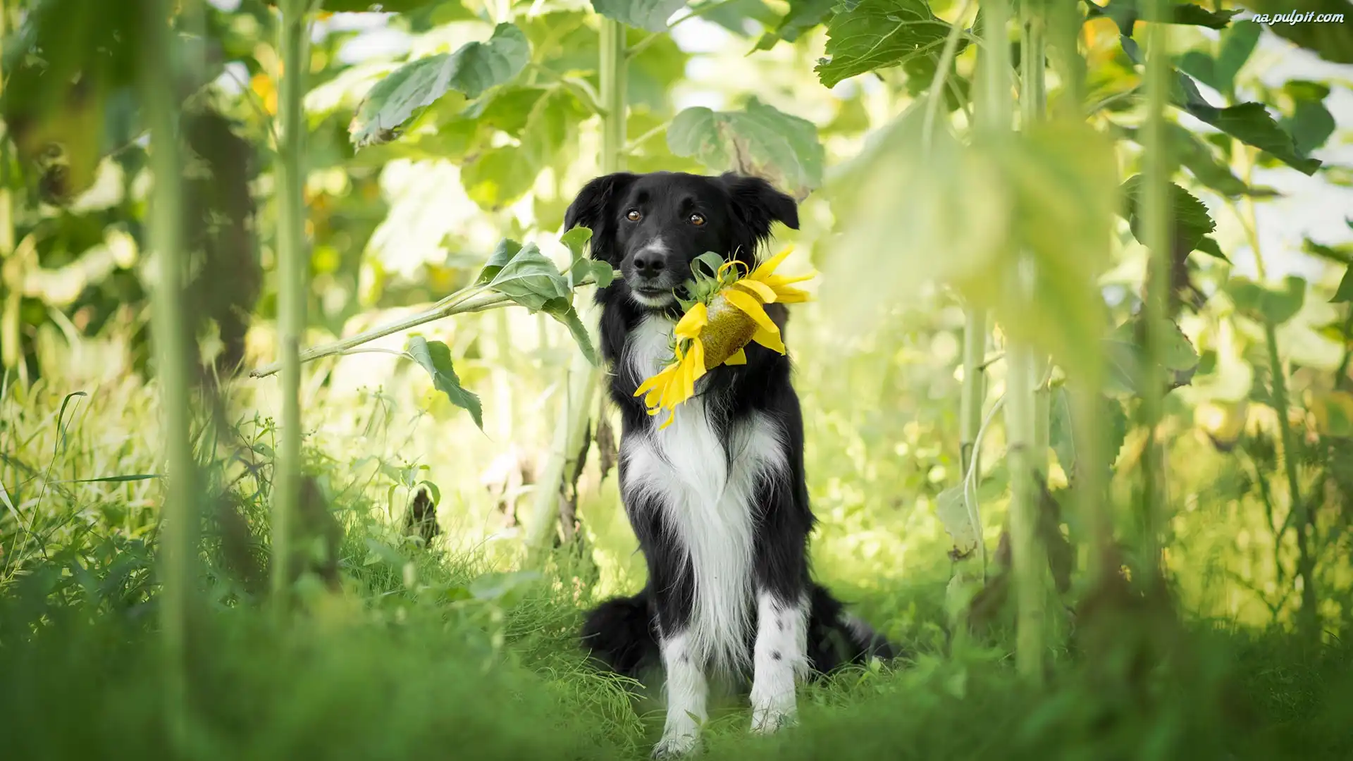 Słonecznik, Pies, Border collie Na Pulpit