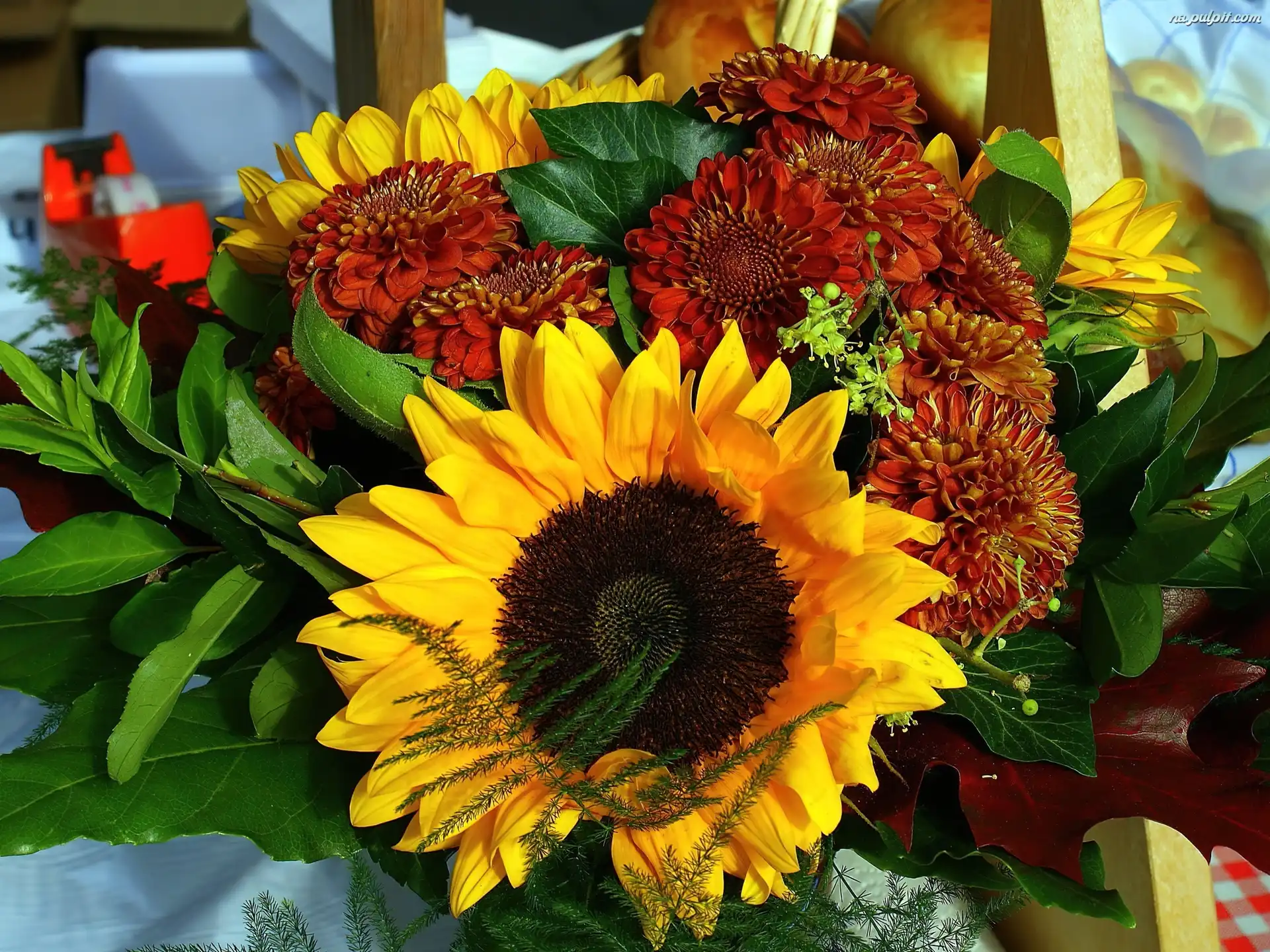 Kompozycja, Słonecznik, Kwiaty Na Pulpit