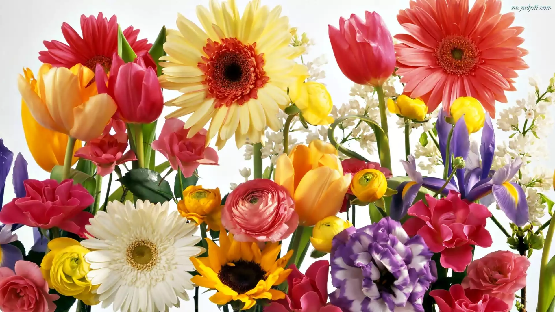 Słonecznik, Gerbery, Róże, Kwiaty, Tulipany Na Pulpit