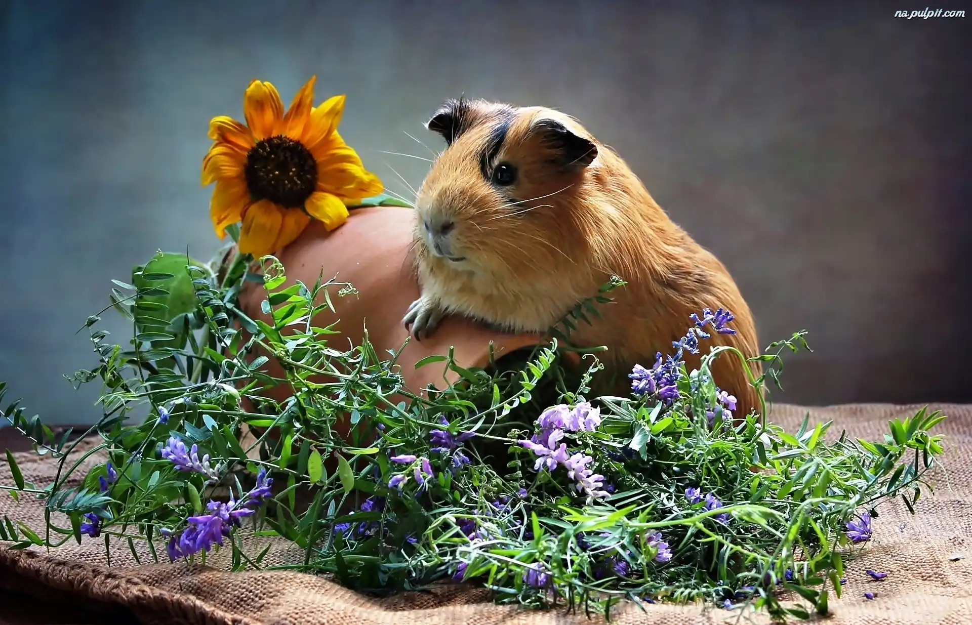 Słonecznik, Świnka Morska, Kwiatki Na Pulpit