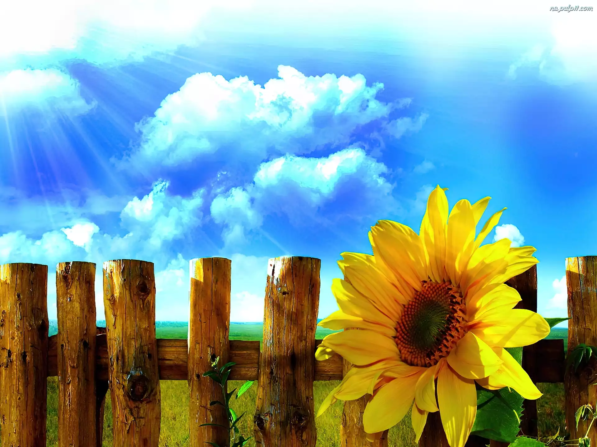 Niebo, Słonecznik, Płot
