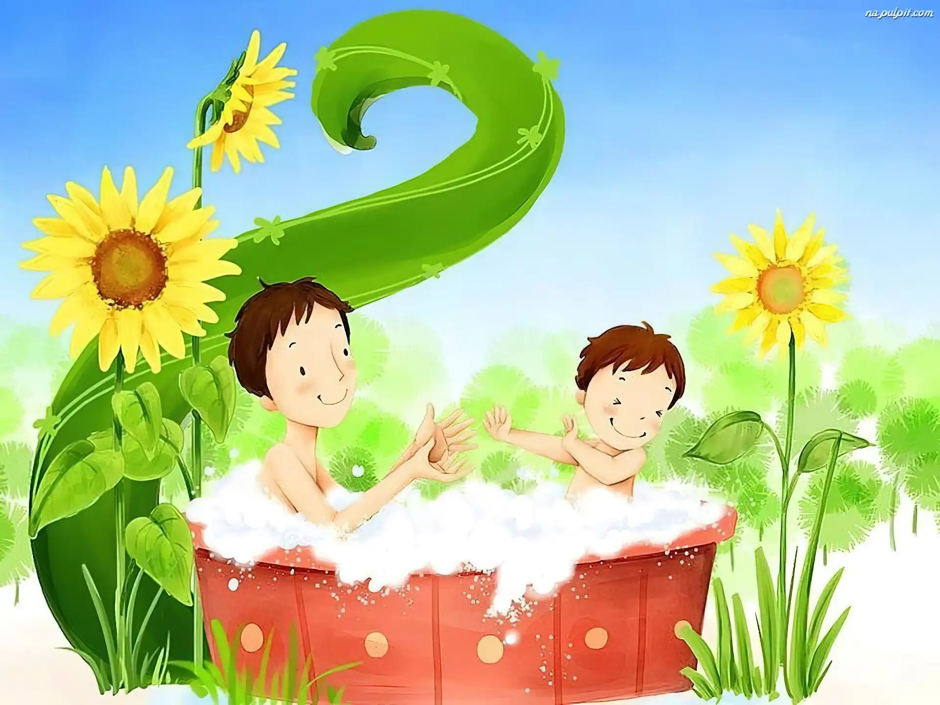 Słoneczniki, Wanna, Chłopcy, Kąpiel Na Pulpit
