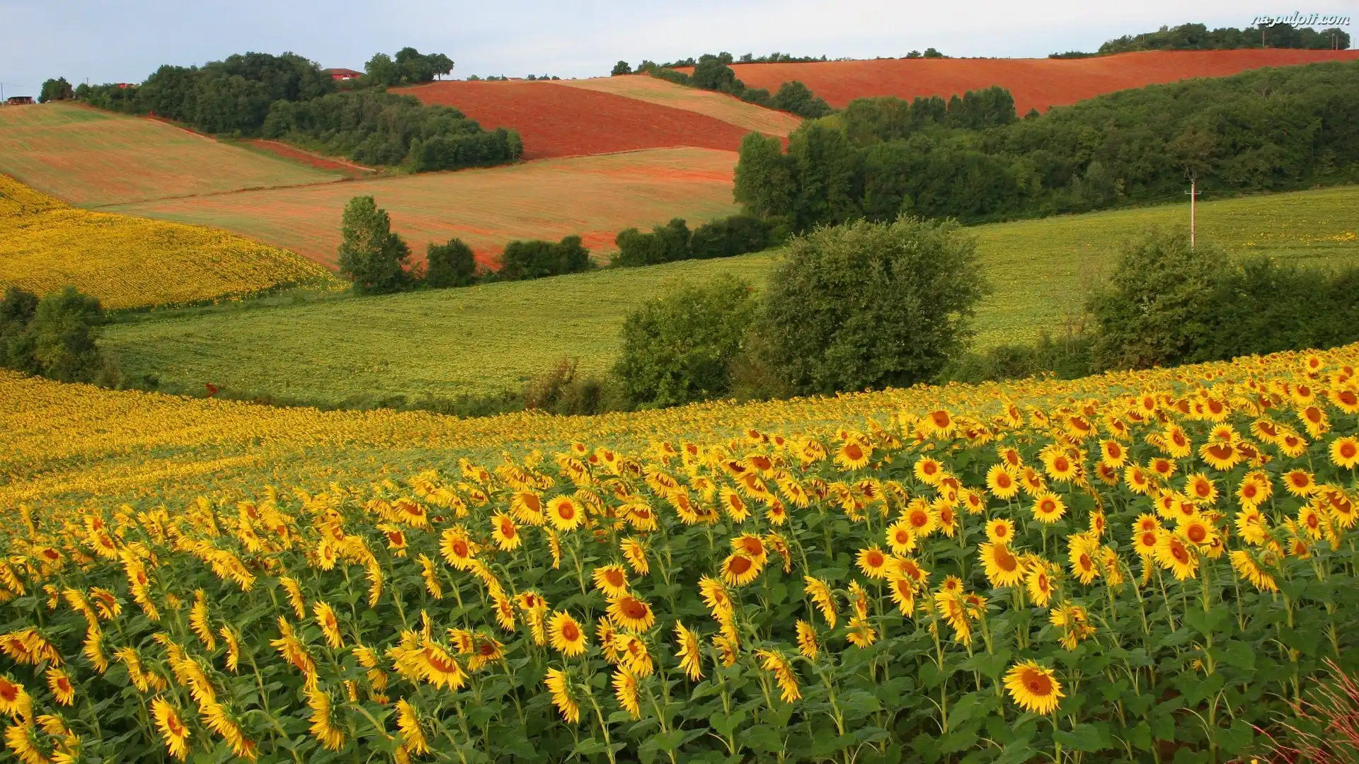 Drzewa, Słoneczniki, Pola Na Pulpit