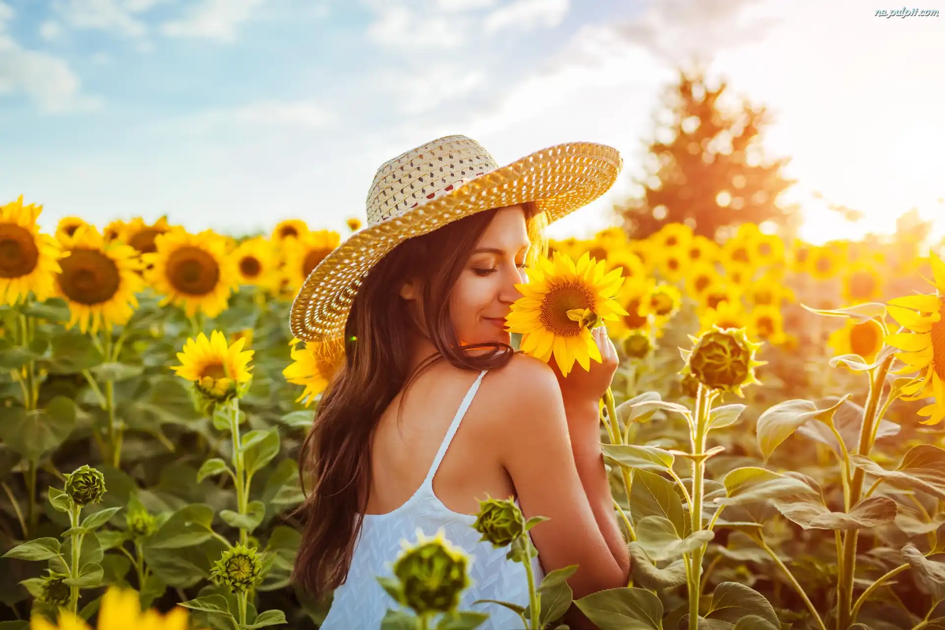 Słoneczniki, Pole, Kapelusz, Kobieta, Słoneczników Na Pulpit