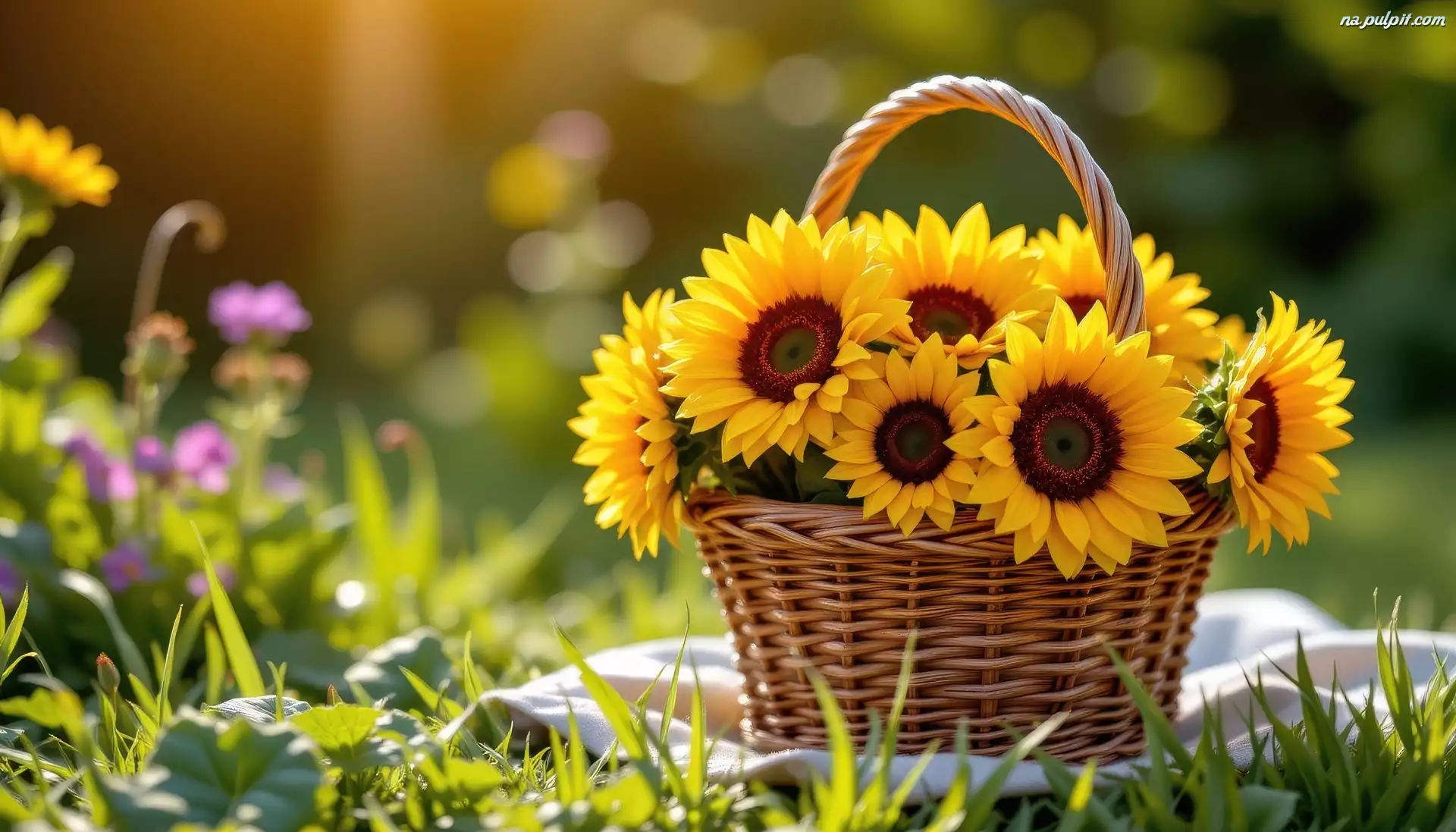 Kwiaty, Słoneczniki, Koszyk, Grafika AI Na Pulpit