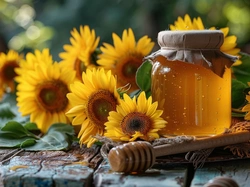 Stare, Miód, Nabierak, Słoneczniki ozdobne, Słoik, Deski