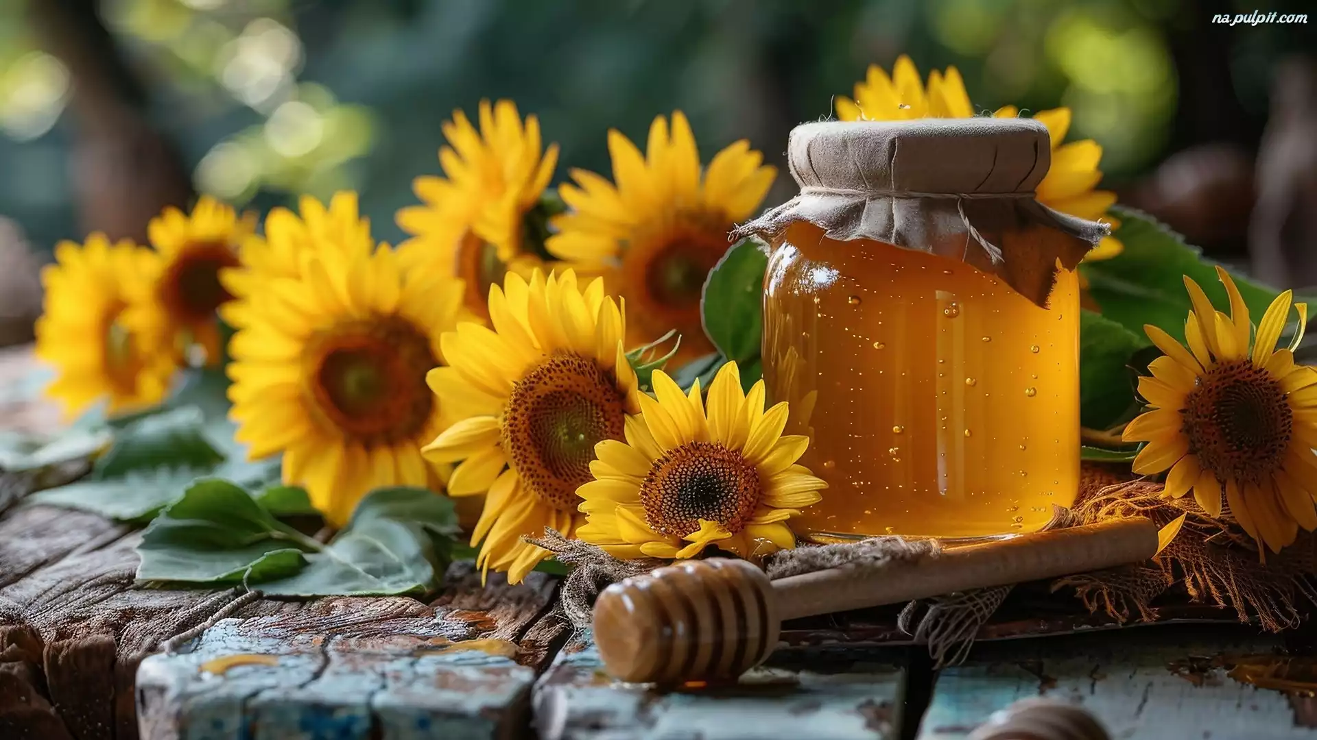 Stare, Miód, Nabierak, Słoneczniki ozdobne, Słoik, Deski Na Pulpit
