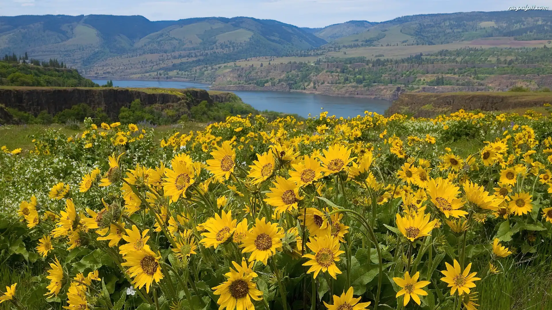 Rzeka, Słoneczniki, Łąka Na Pulpit