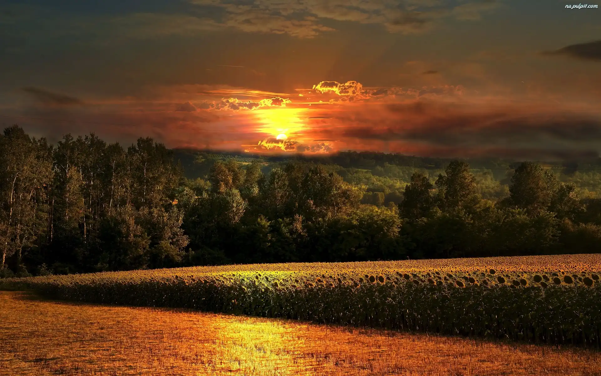 Słoneczniki, Słońca, Zachód, Las Na Pulpit