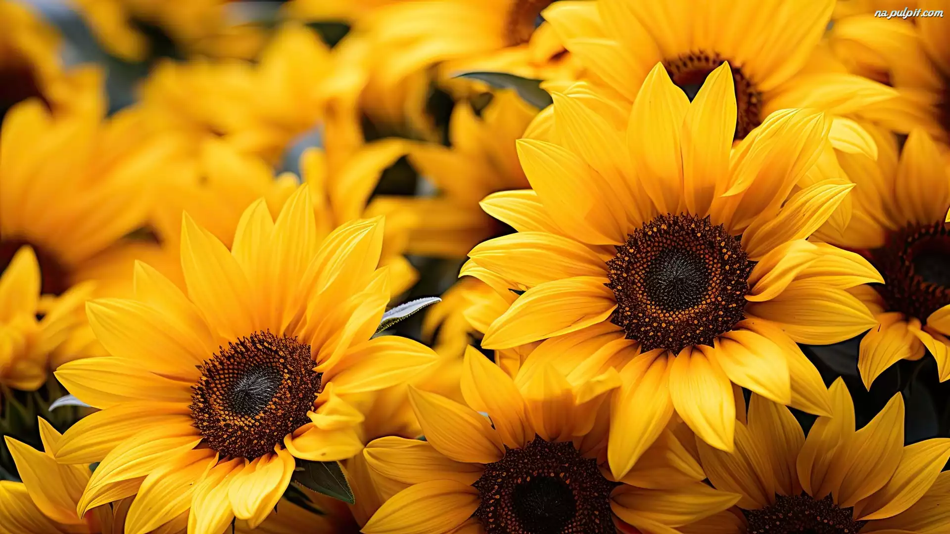 Słoneczniki, Kwitnące, Zbliżenie Na Pulpit