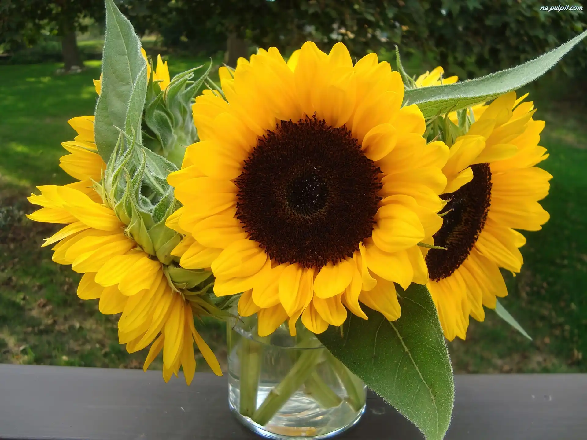 Słoneczników, Szklany, Wazon, Bukiet Na Pulpit