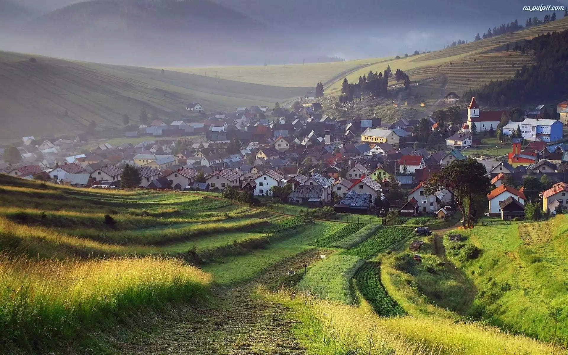 Słowacja, Miasteczko, Łąki, Pola, Góry Na Pulpit