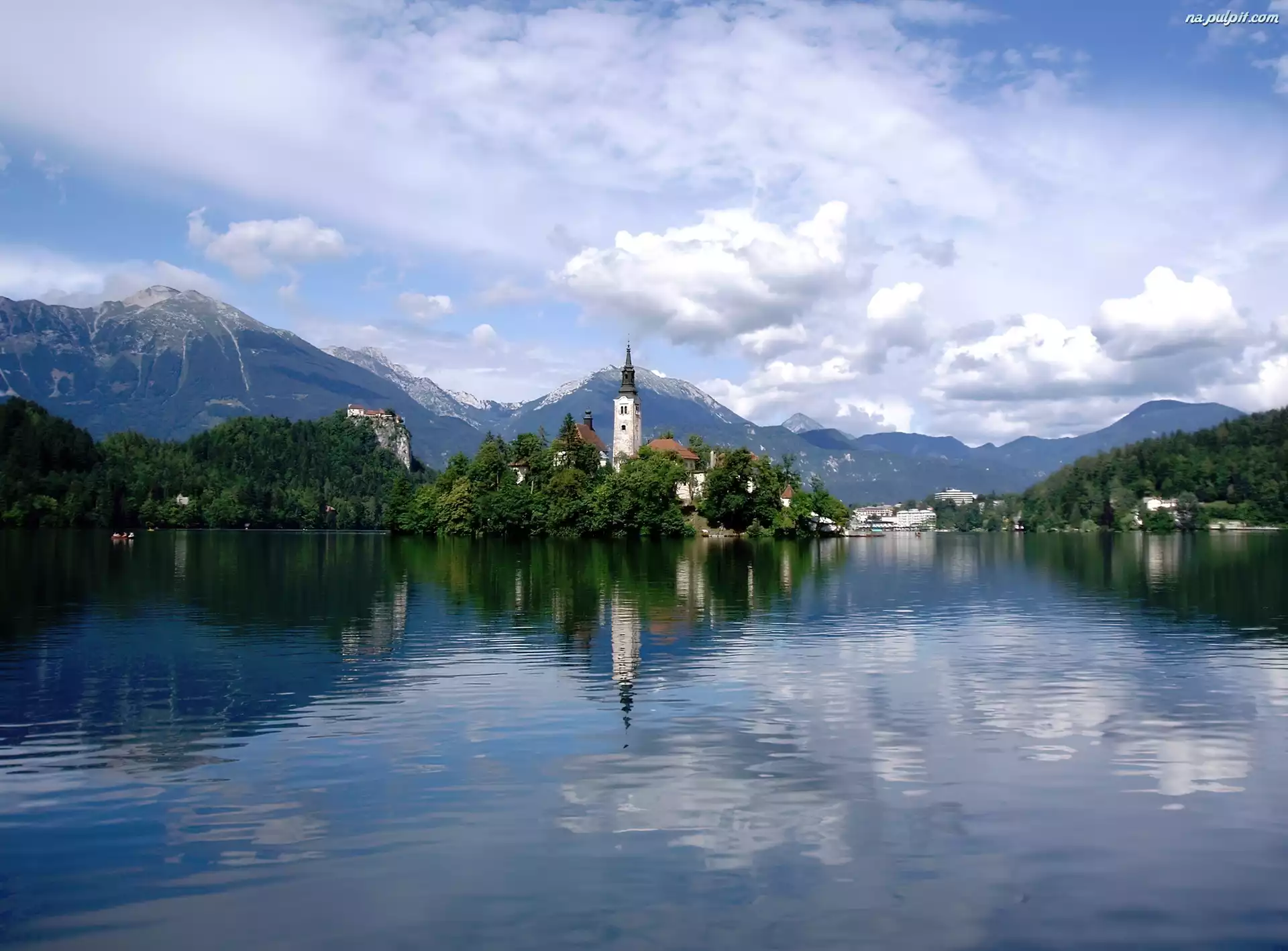 Słowenia, Jezioro, Góry, Kóściół, Bled Na Pulpit