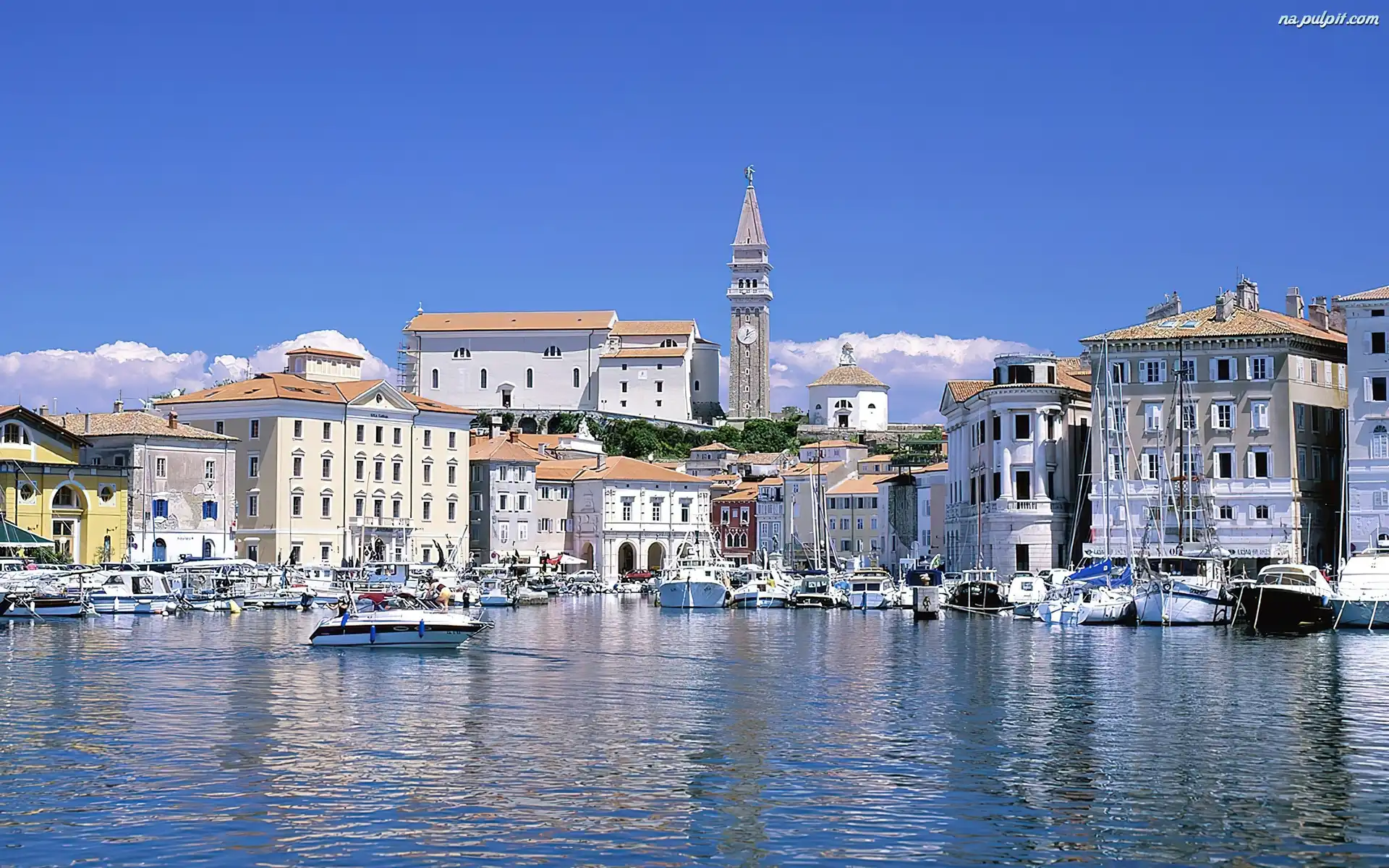 Słowenia, Jachty, Motorówki, Przystań, Domy Na Pulpit