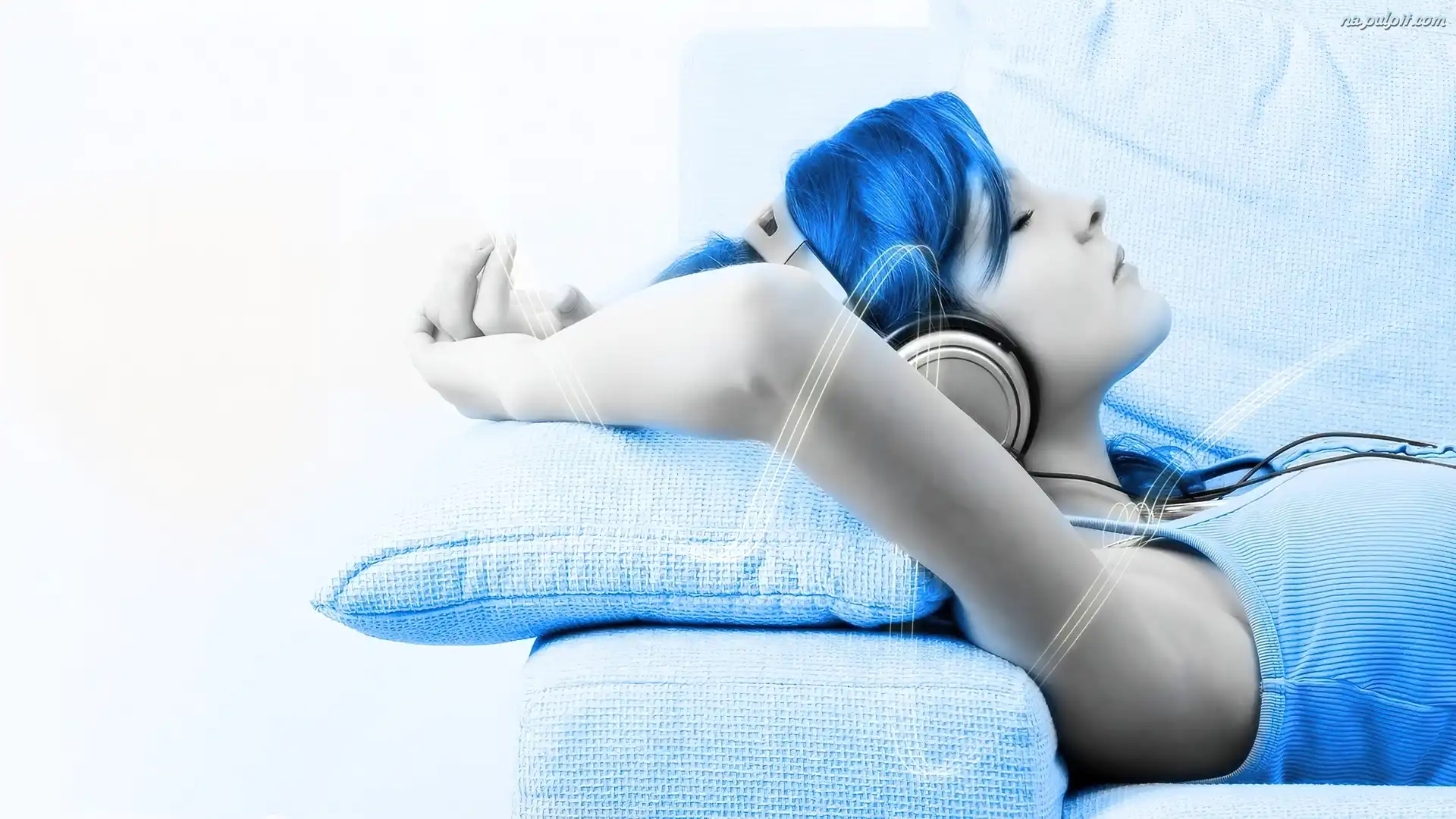 Słuchawki, Niebieskie, Kobieta, Włosy