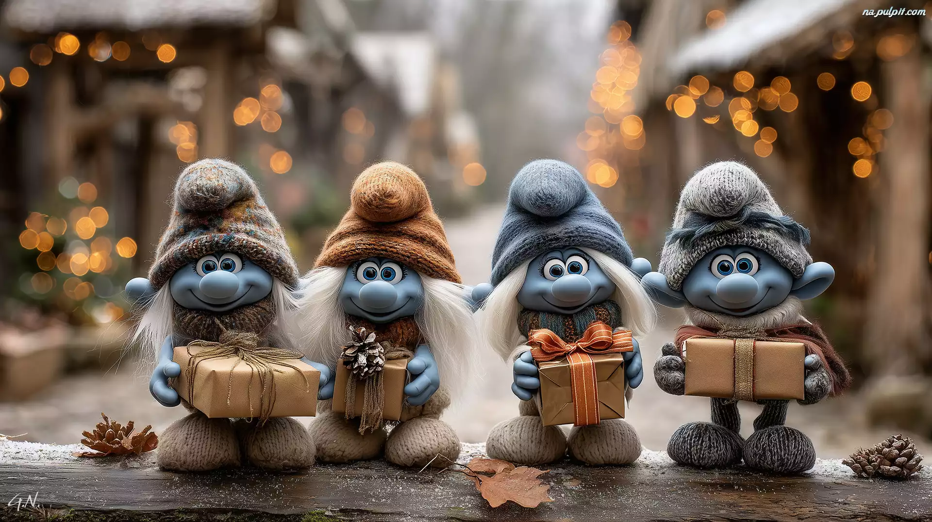 Cztery, Smerfy, Prezenty, Grafika AI Na Pulpit