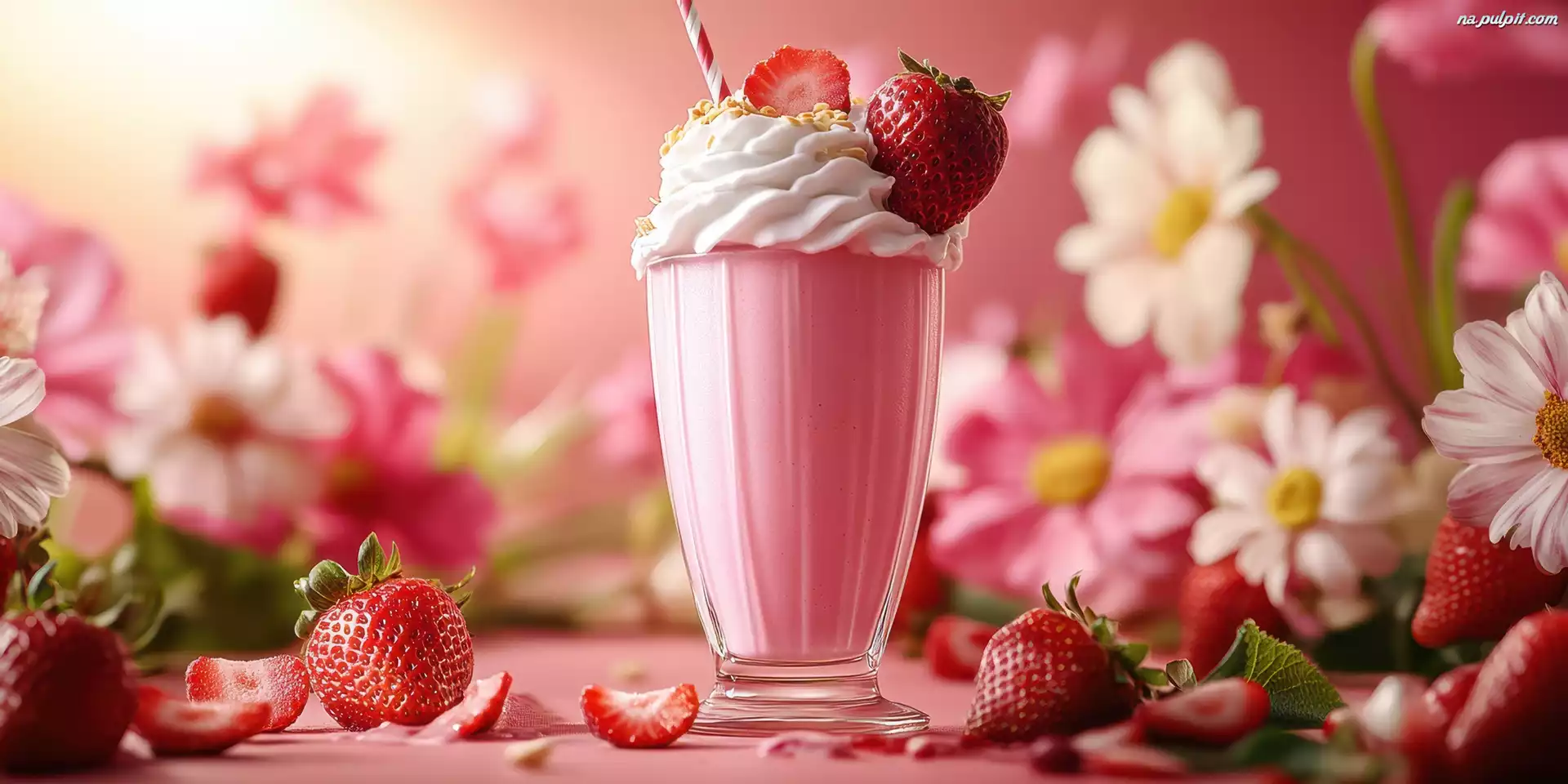 Kwiaty, Koktajl, Bita, Åšmietana, Truskawki, Grafika Na Pulpit
