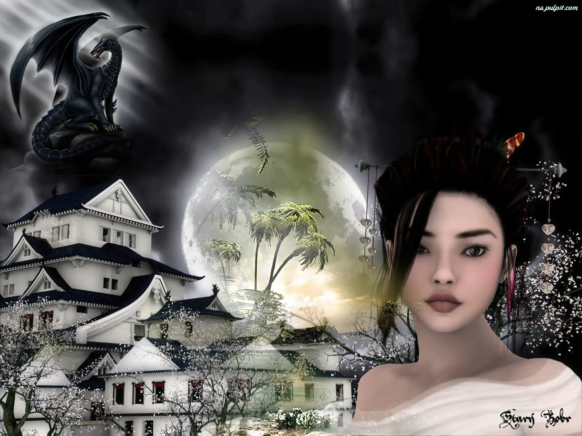 Smok, Japońskie, Dziewczyna, Budowle Na Pulpit