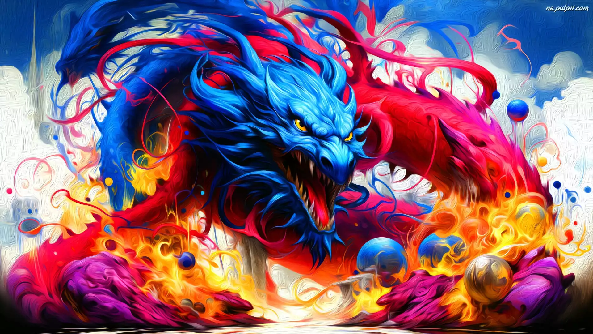 Grafika, Fantasy, Kolorowy, Smok Na Pulpit