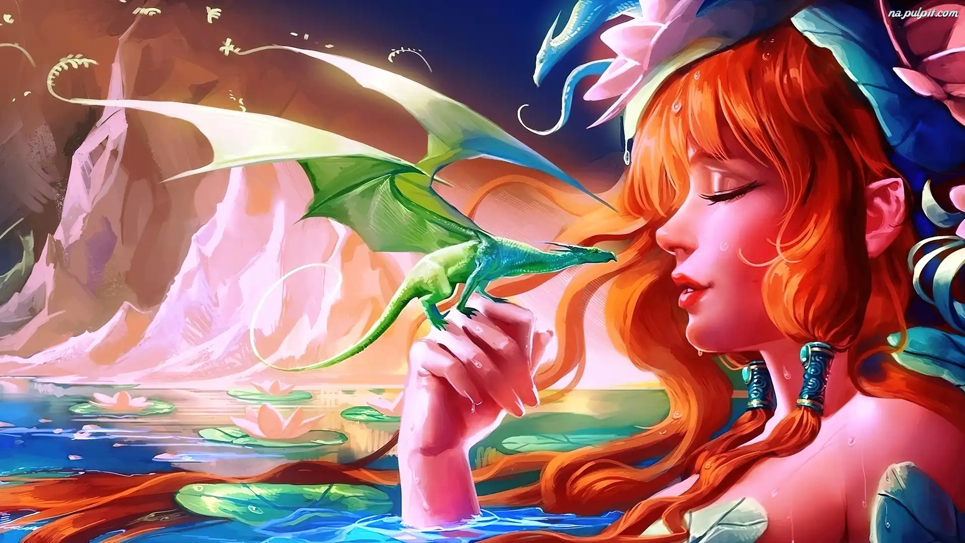 Smok, Dziewczyna, Rudowłosa, Zielony Na Pulpit