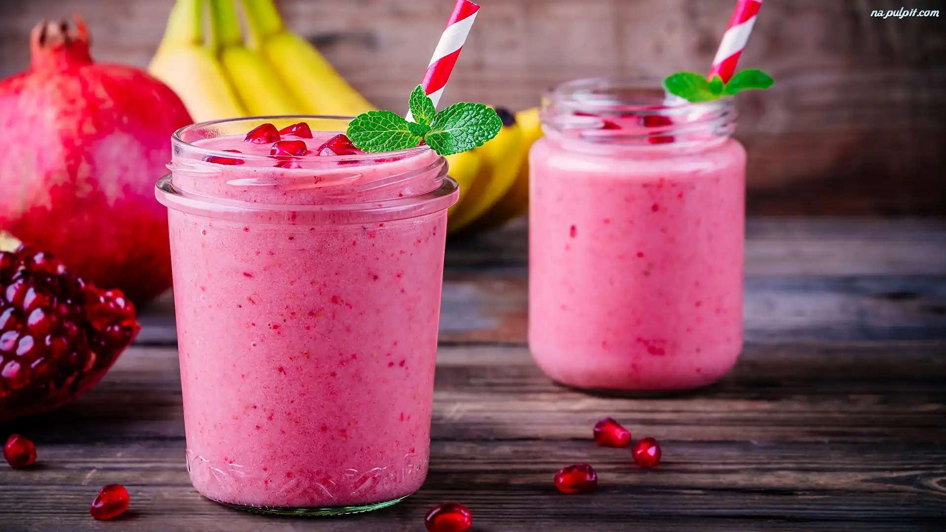 Deski, Smoothie, Banany, Słomka, Słoik, Napój, Granat Na Pulpit