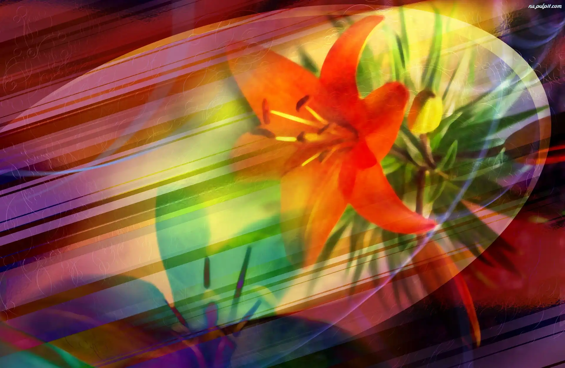 Smugi, Lilie, Czerwone, Kolorowe Na Pulpit