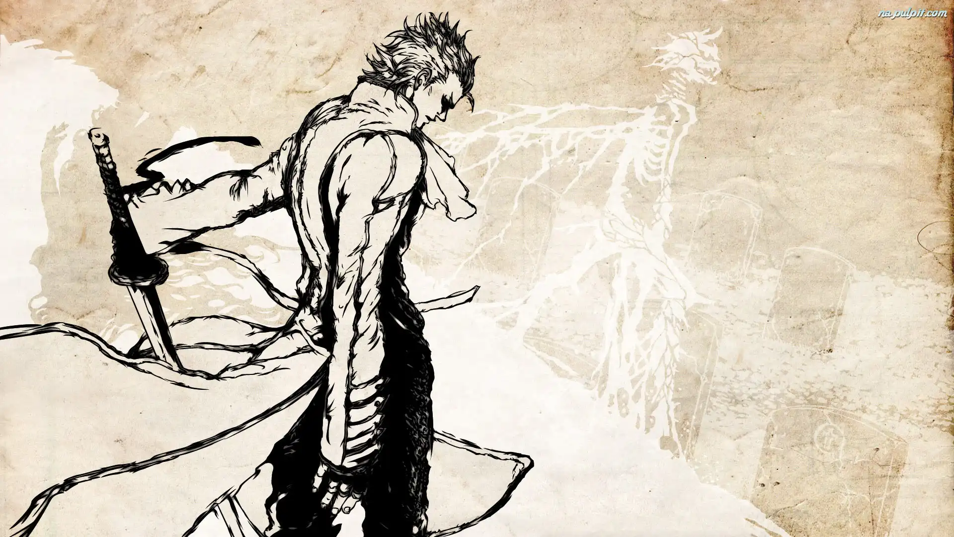 Smutny, Grafika, Devil May Cry, Postać, Gra wideo, Vergil Na Pulpit