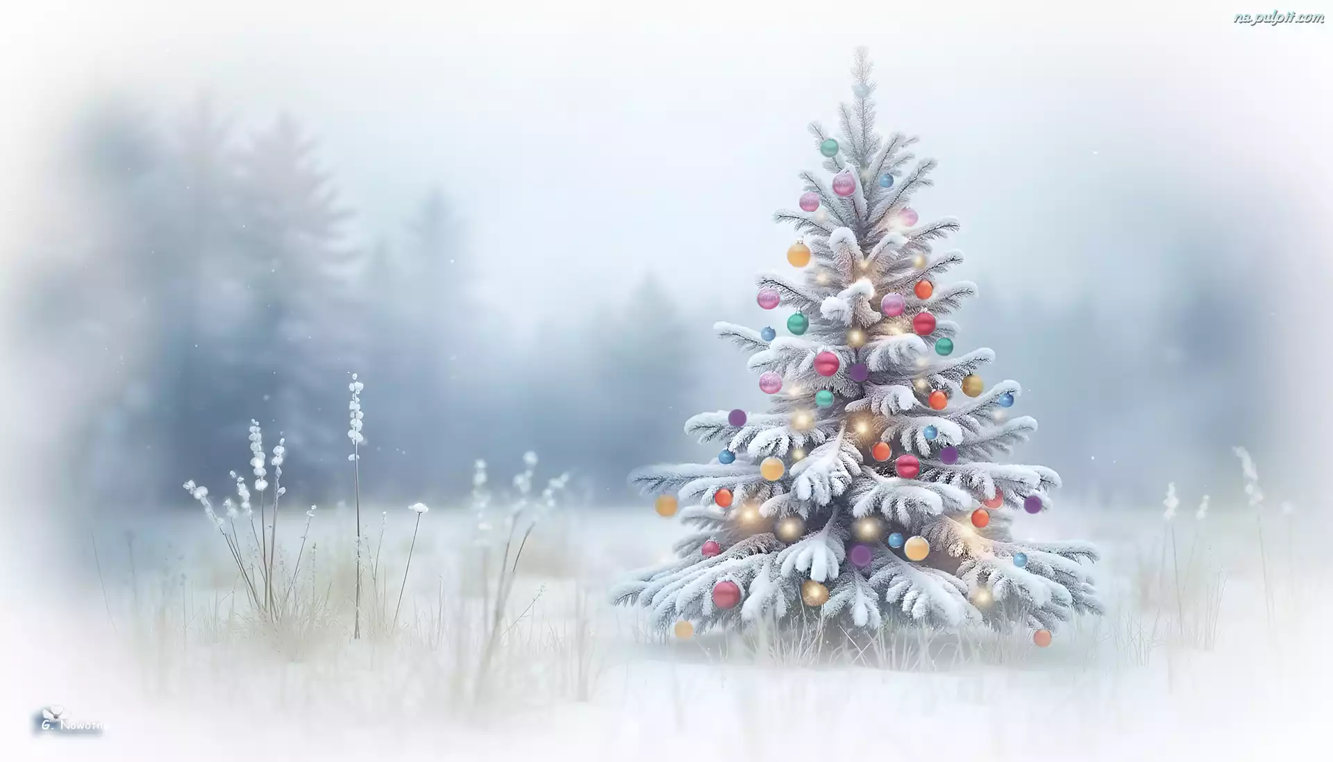 Zima, Choinka, Bombki, Śnieg, Kolorowe, Boże Narodzenie