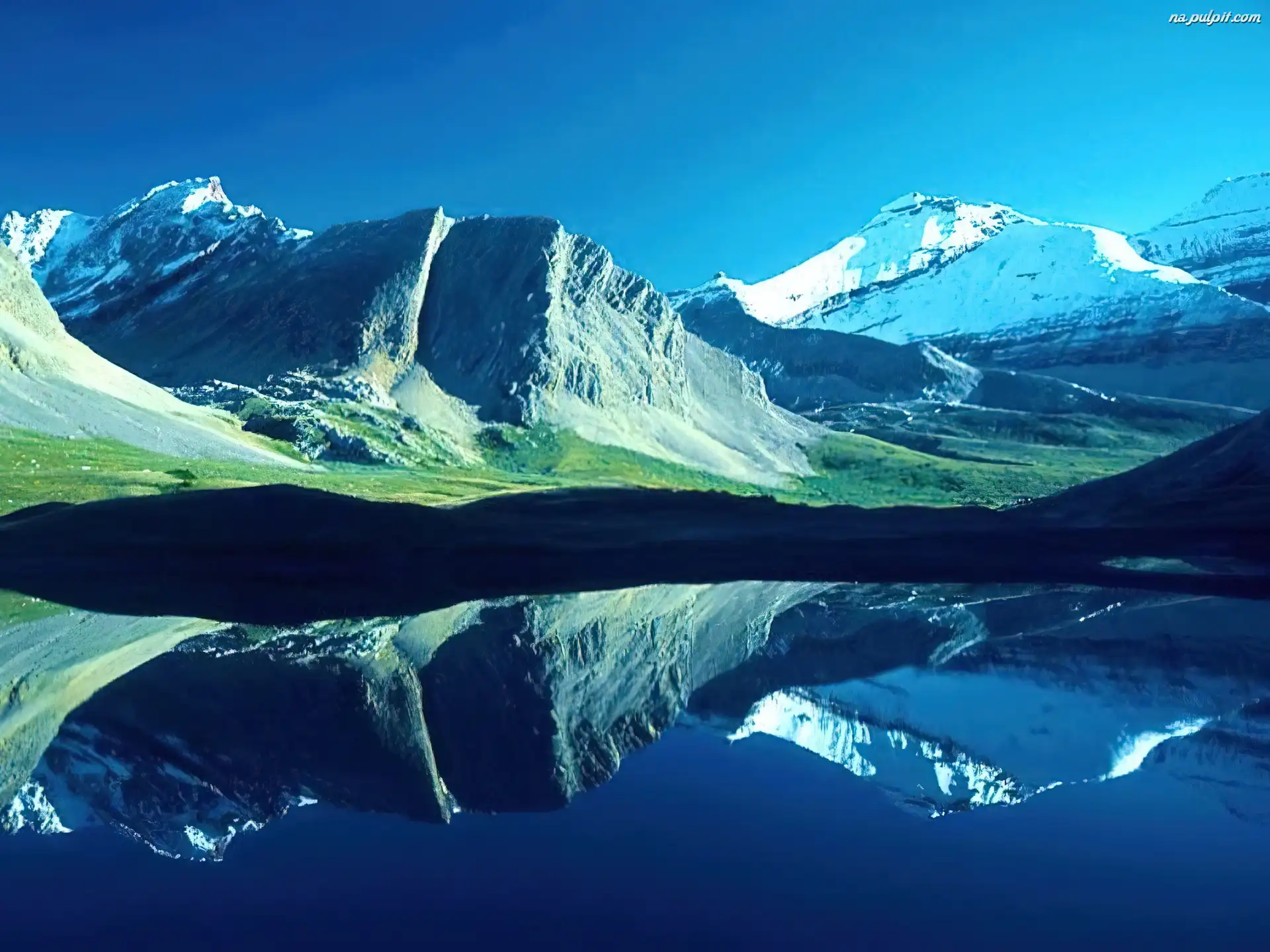 śnieg, łąka, Góry, woda Na Pulpit