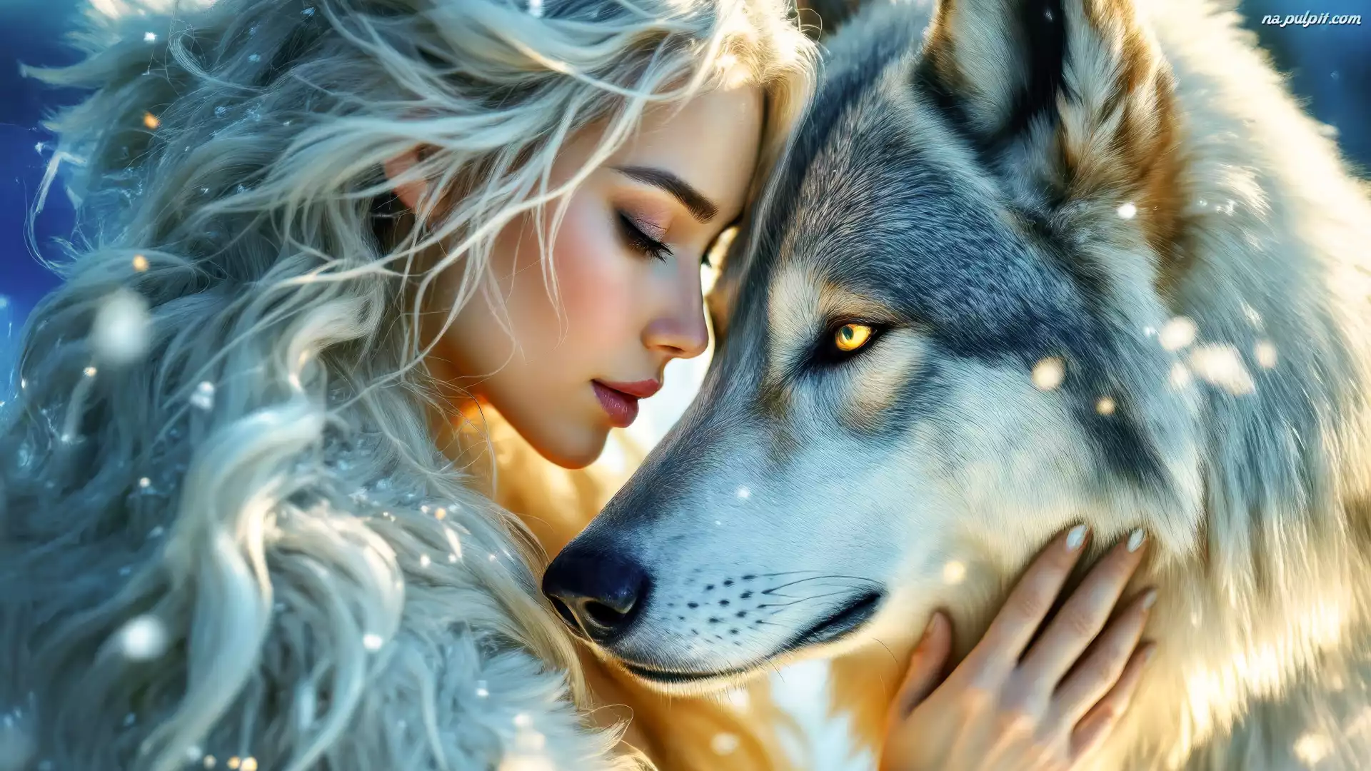 Kobieta, Blondynka, Wilk, Åšnieg Na Pulpit