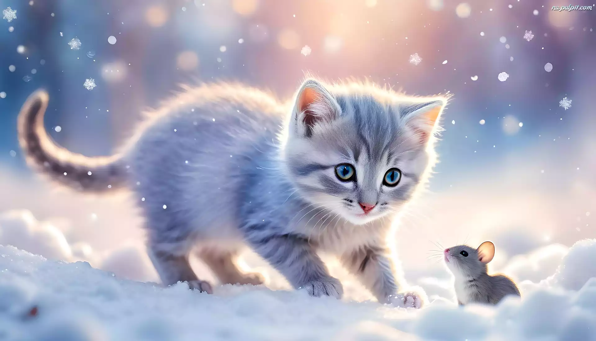Szary, Kot, Mysz, Śnieg Na Pulpit