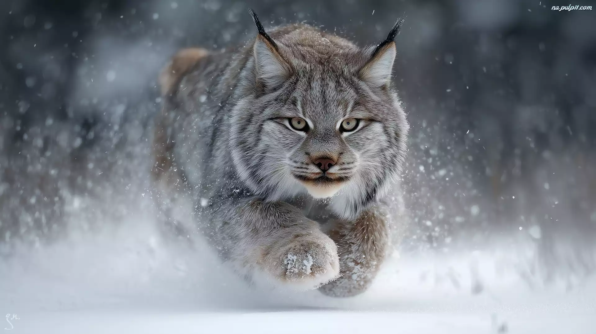 Ryś, Śnieg, Zima, Grafika AI Na Pulpit