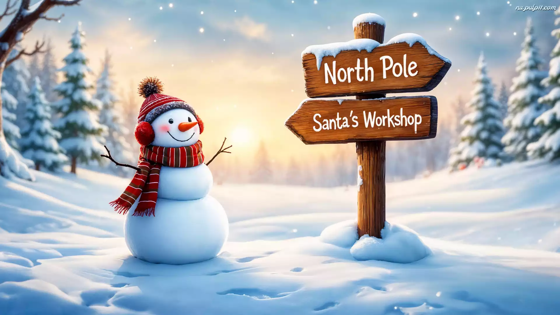 Zima, Bałwanek, Drogowskaz, Śnieg Na Pulpit