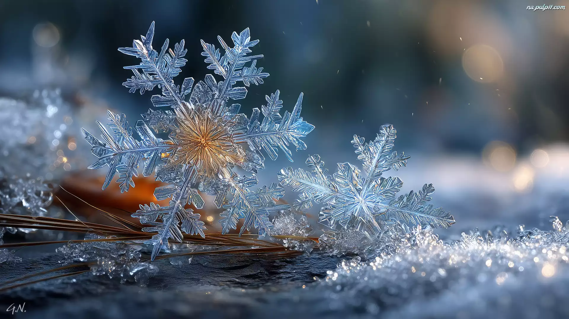 Zima, Śnieżynki, Śnieg, Grafika AI Na Pulpit