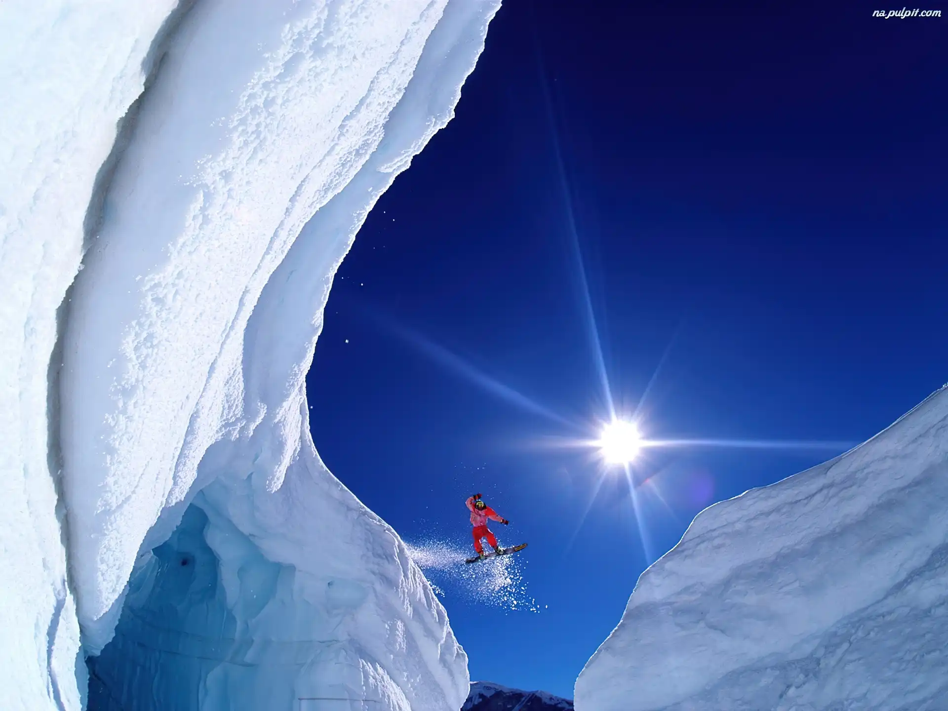 Snowboardzista, Słońce, Niebo, Góry Na Pulpit