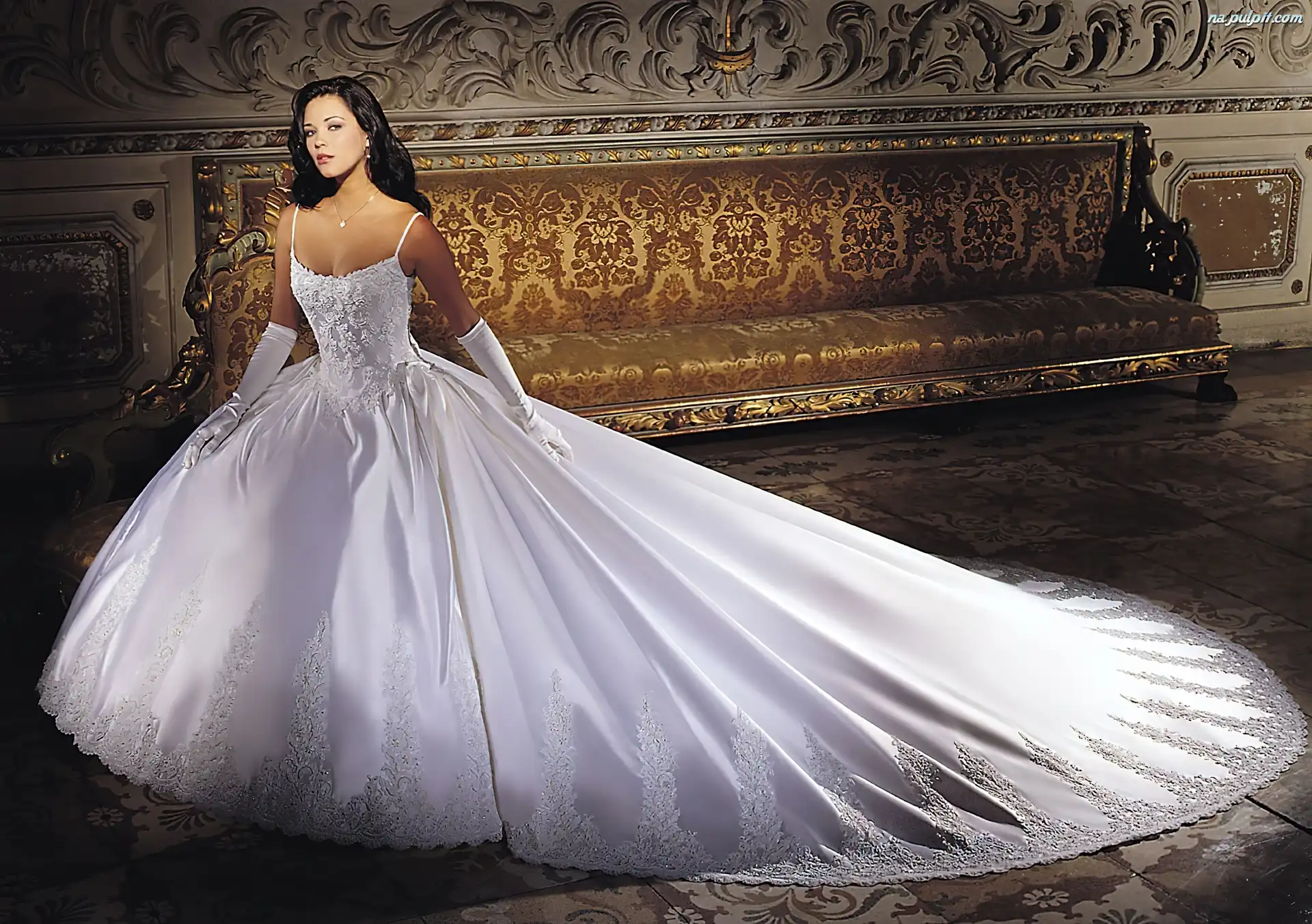 Sofa, Suknie, Biała, Kobieta, Rękawiczki
