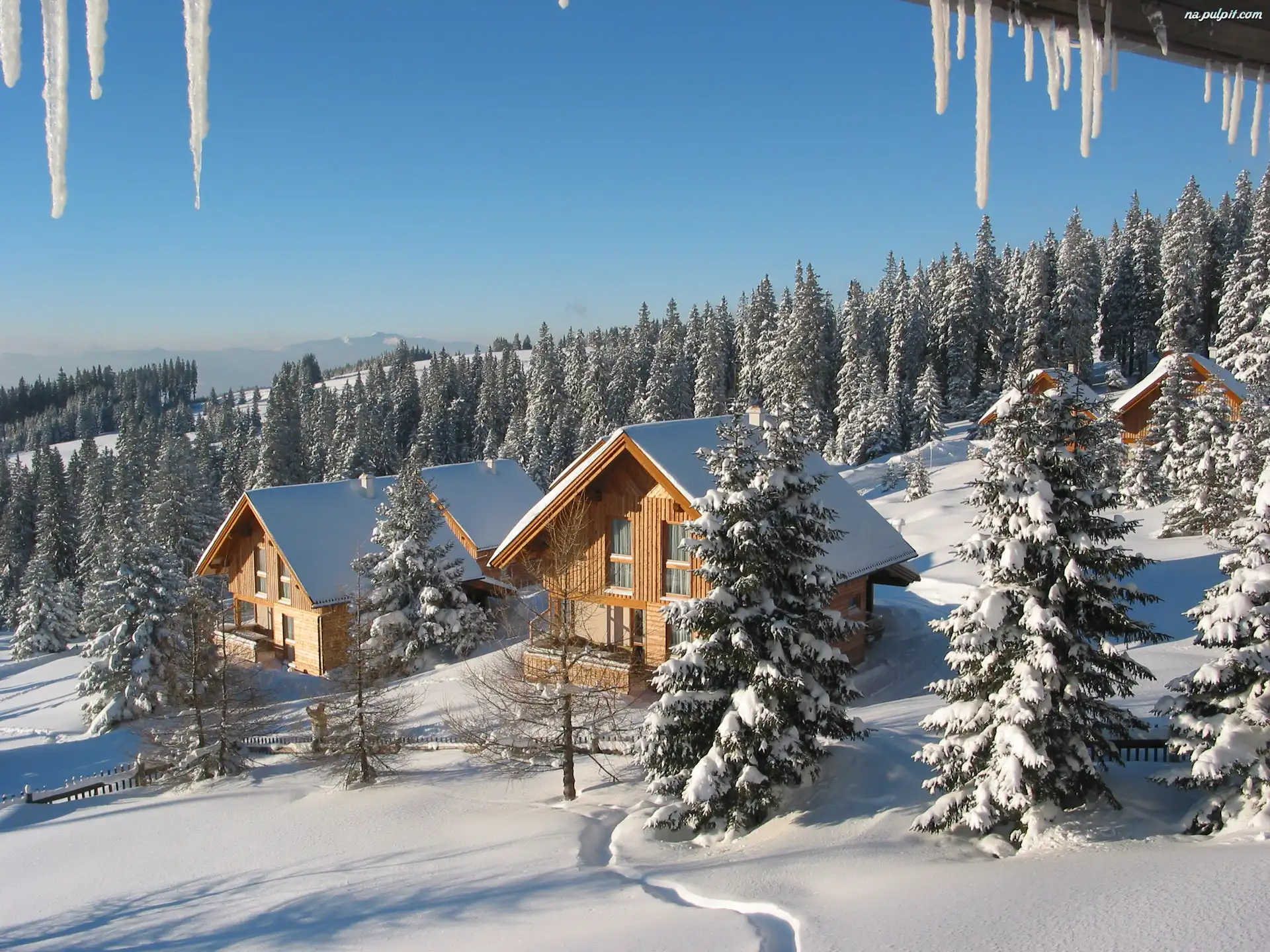 Sopelki, Domki, Zima, Choinki Na Pulpit