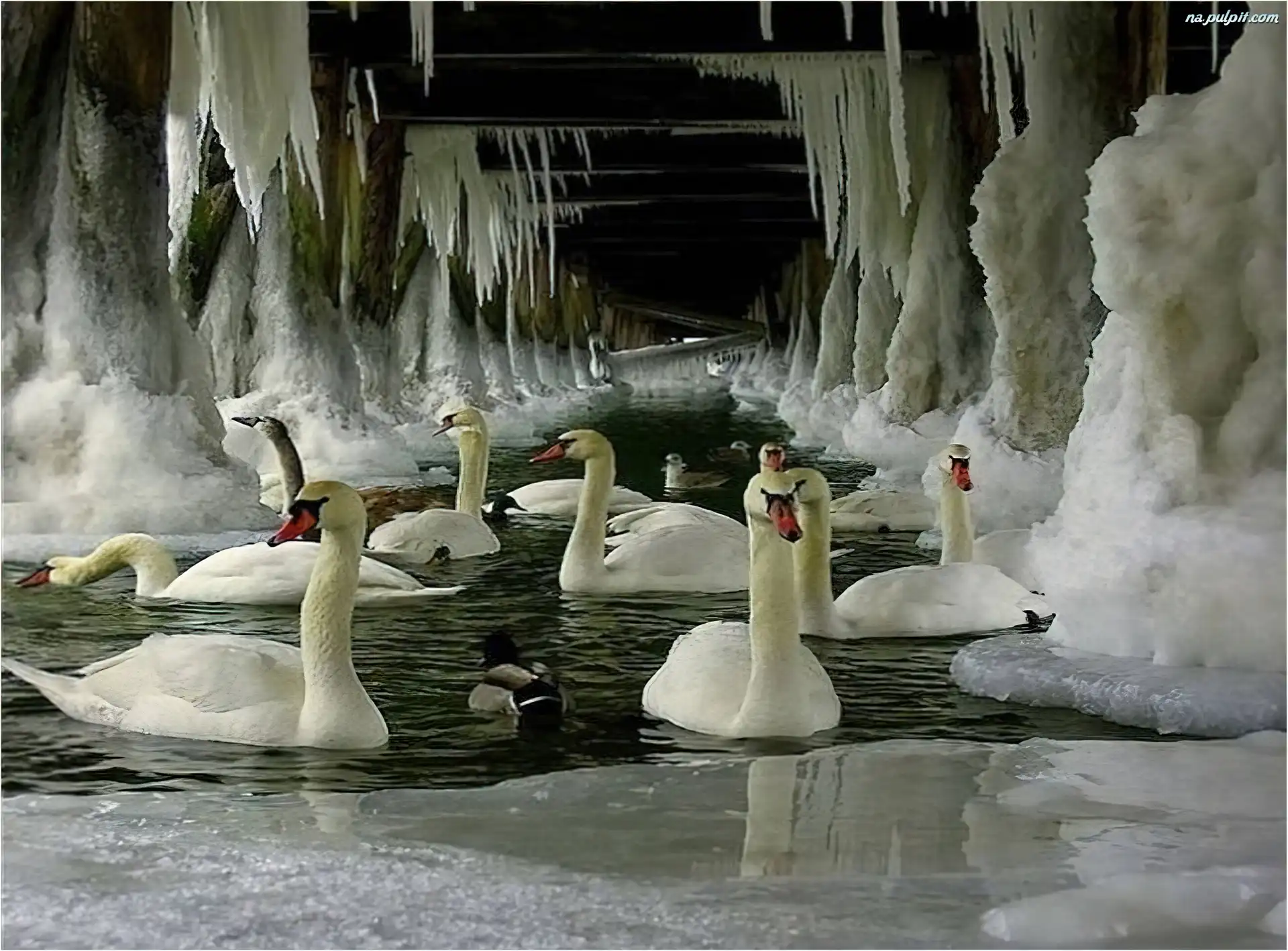 Łabędzie, Lód, Sople, Most Na Pulpit