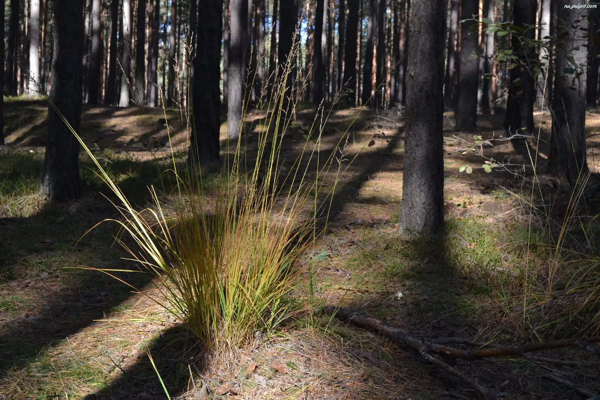 Sosny, Cienie, Drzew, Kępa, Las, Trawy