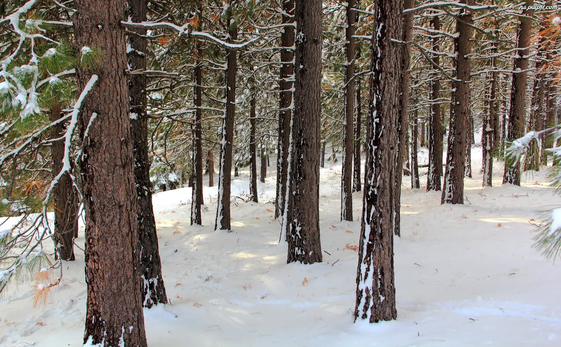 Sosny, Las, Zima, Drzewa Na Pulpit