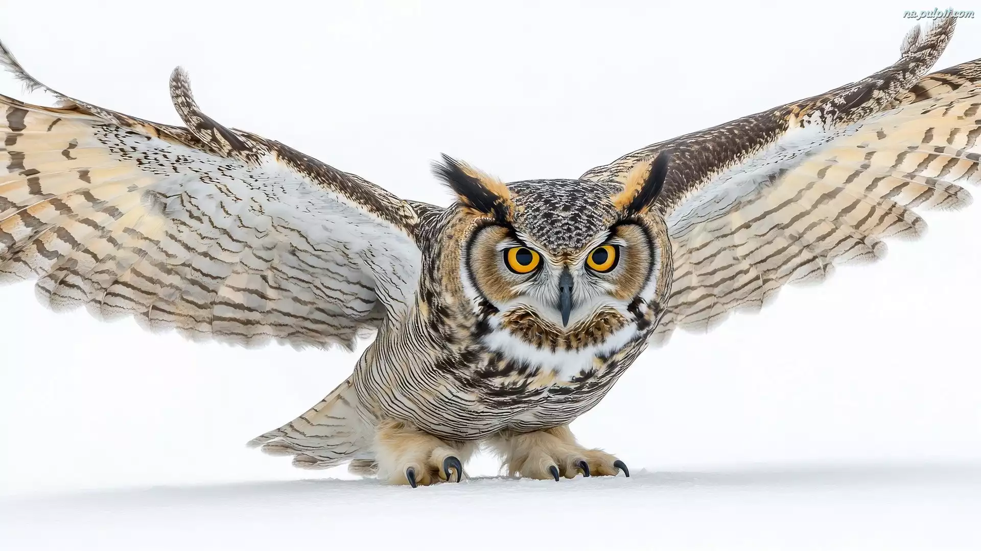 Skrzydła, Sowa, Puchacz, Śnieg, Rozpostarte Na Pulpit