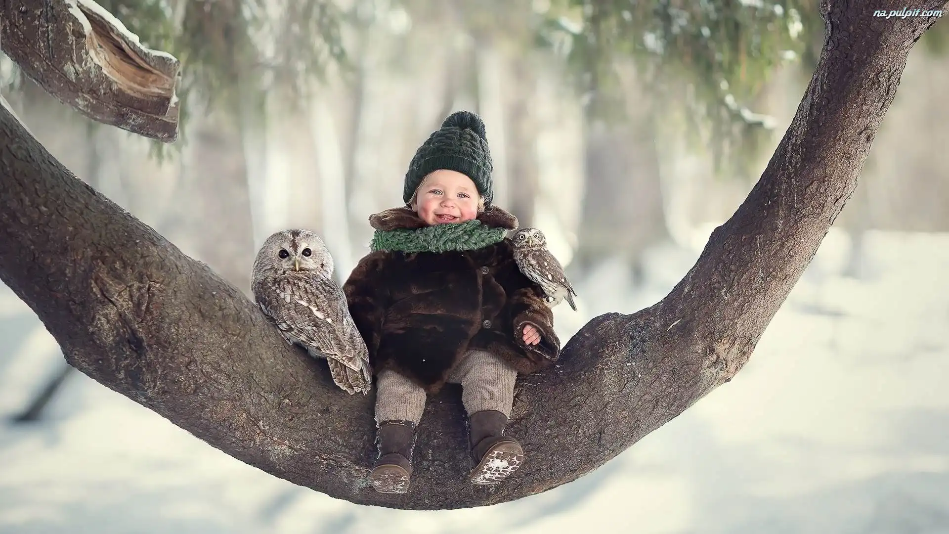 Sowy, Drzewo, Konar, Puszczyk, Dziecko, Pójdźka