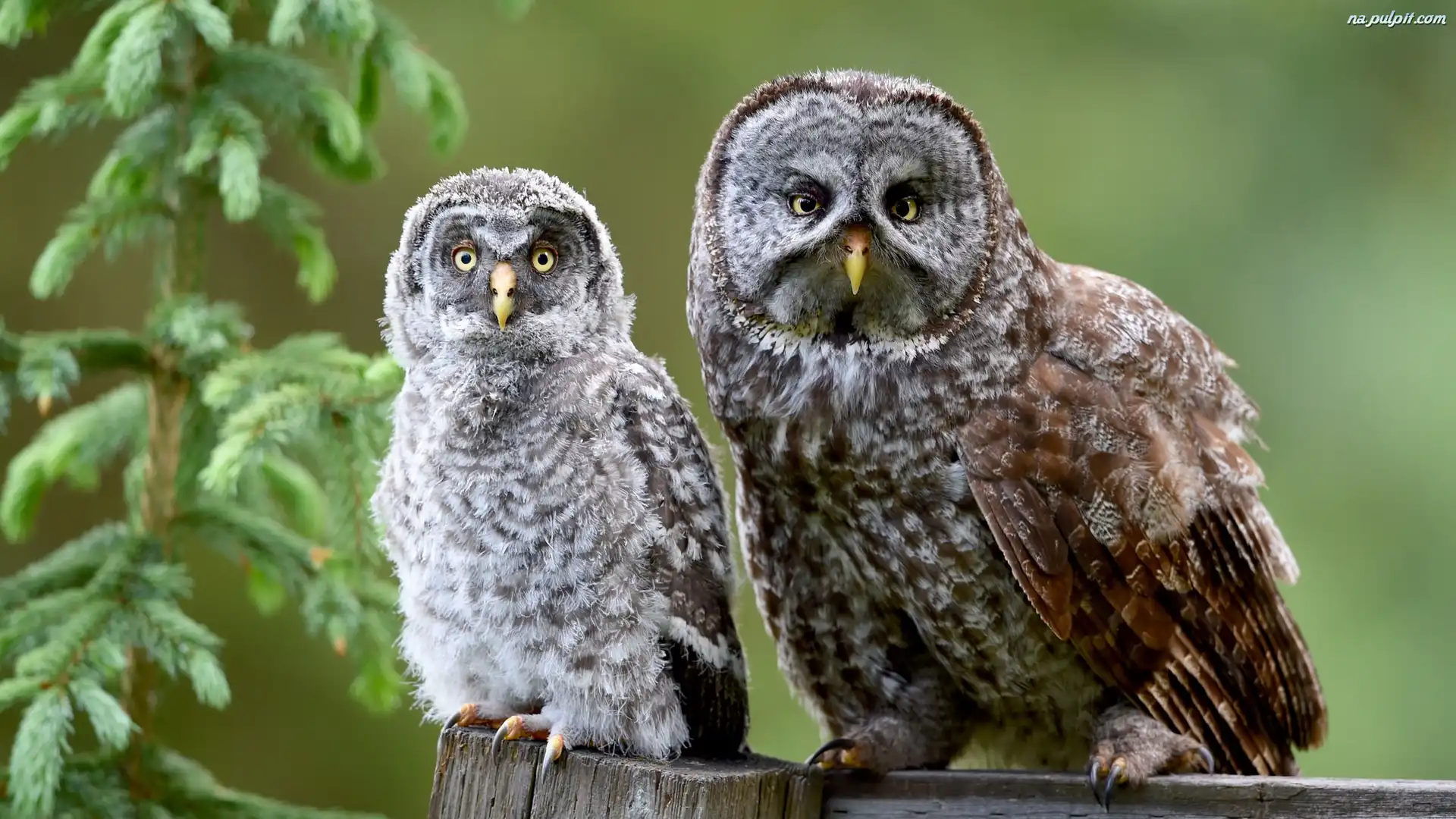 Świerk, Puszczyki mszarne, Sowy, Gałązka Na Pulpit
