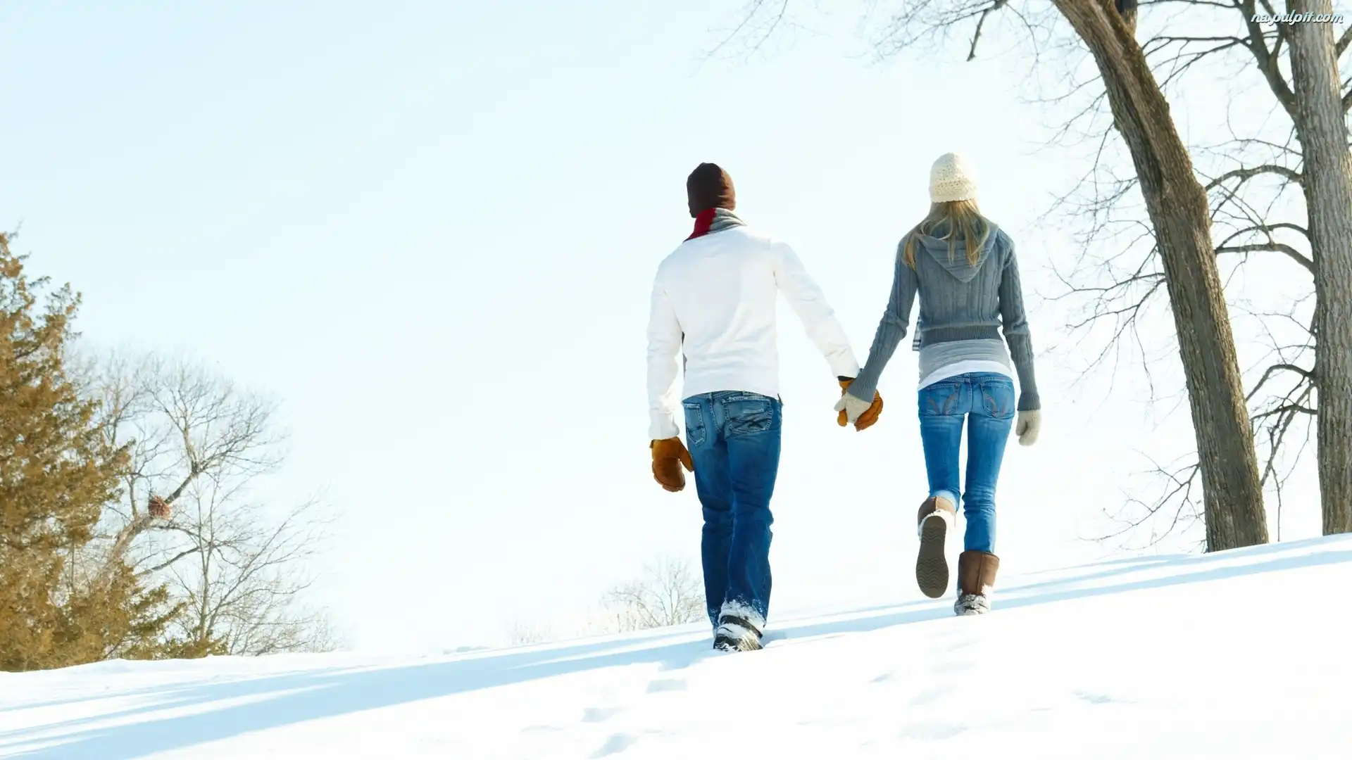 Spacer, Åšnieg, Park, Para Na Pulpit