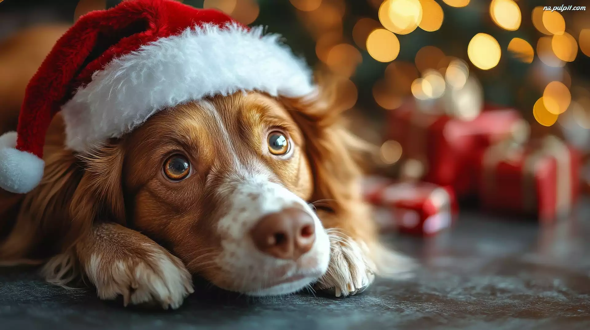 Mikołaja, Pies, Springer spaniel walijski, Prezenty, Czapka Na Pulpit