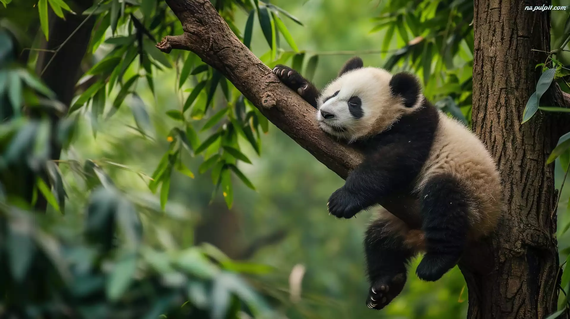 Konar, Śpiąca, Panda, Grafika, Drzewo Na Pulpit