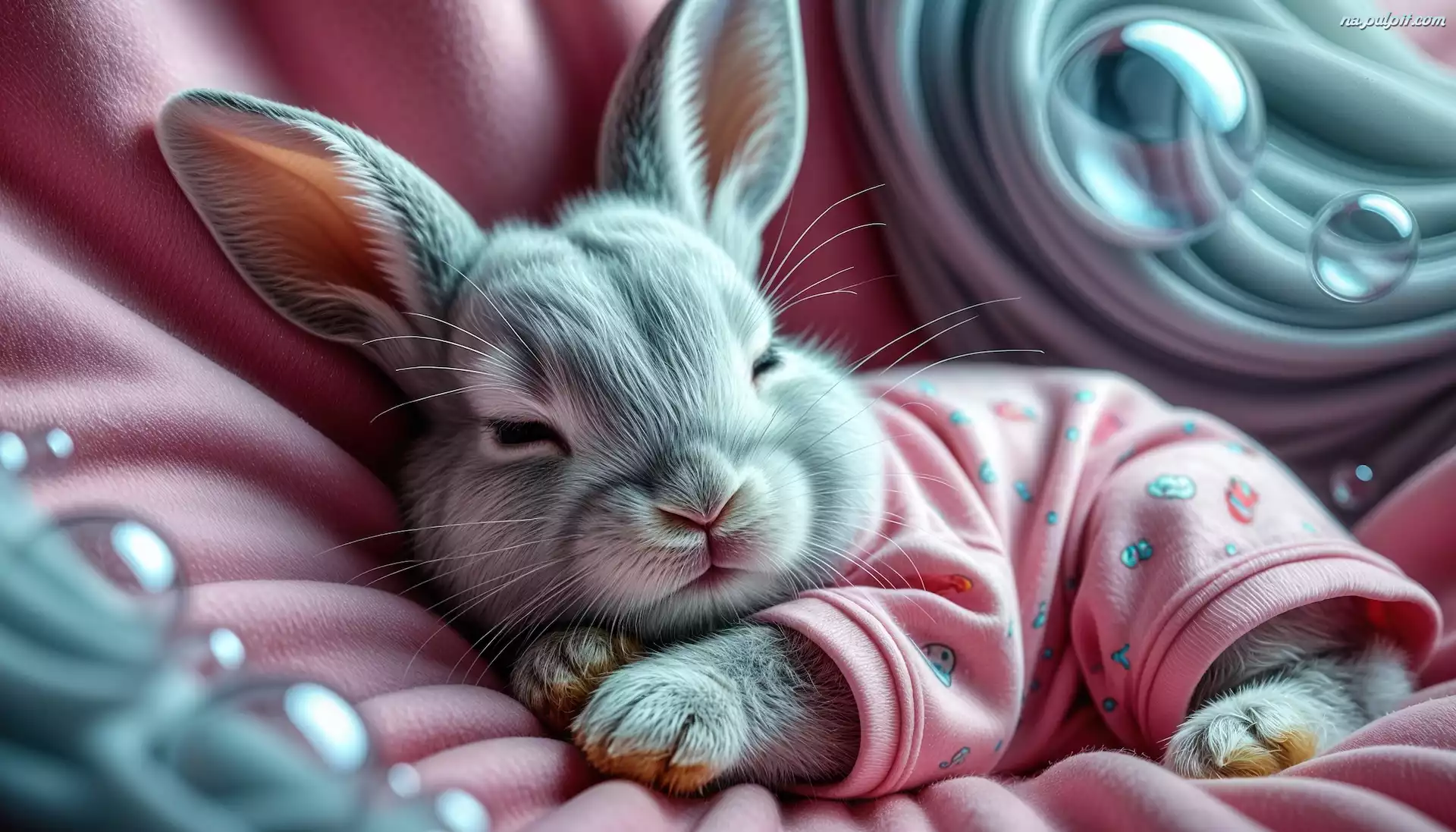 Różowa, Śpiący, Królik, AI, Piżama Na Pulpit